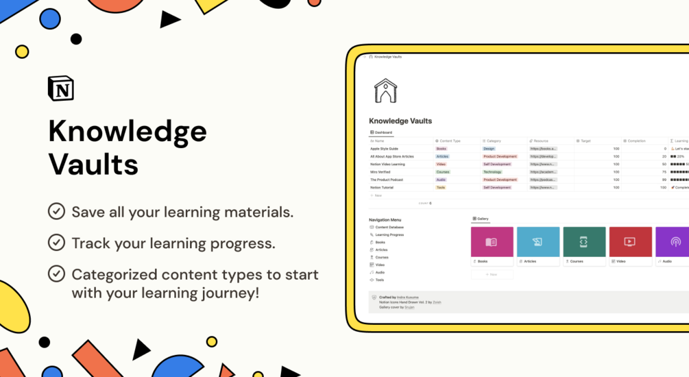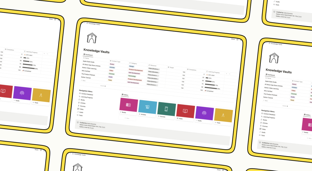 Knowledge Vaults Notion Template will be your second brain to store all your valuable learnings and materials you want to track to digest later anytime.